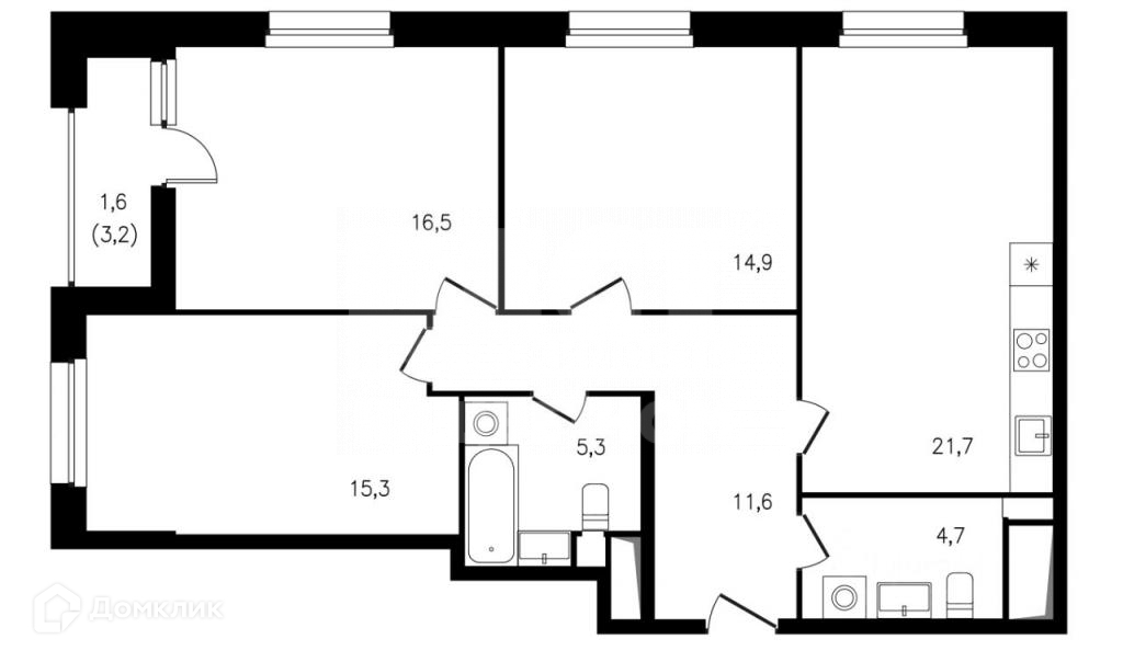 Количество комнат 3
