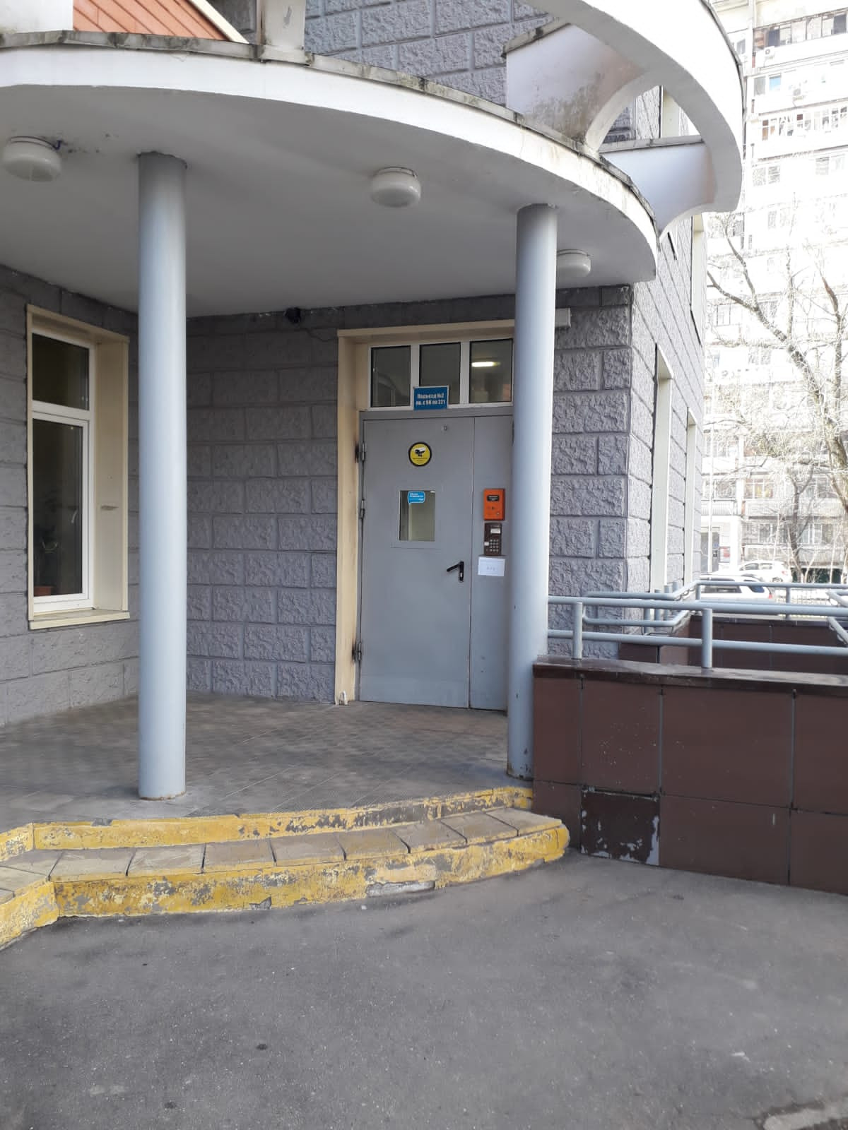 Имеет 2 грузовых и 1 пассажирский лифт.