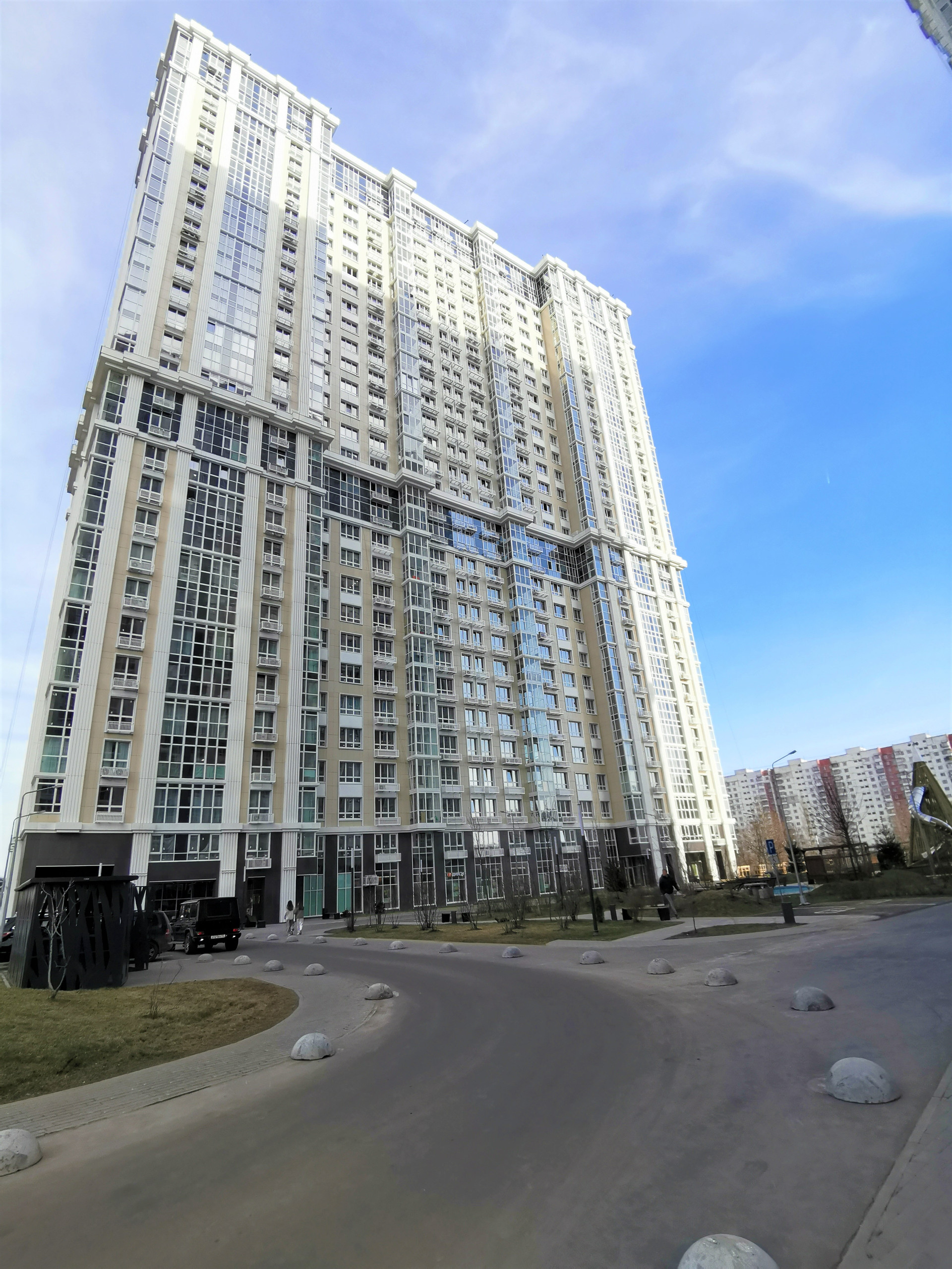 Закрытая территория. На первых этажах разместятся объекты торговли, сервиса и досуга. В подземном паркинге предусмотрены автомойка и индивидуальные кладовые помещения.