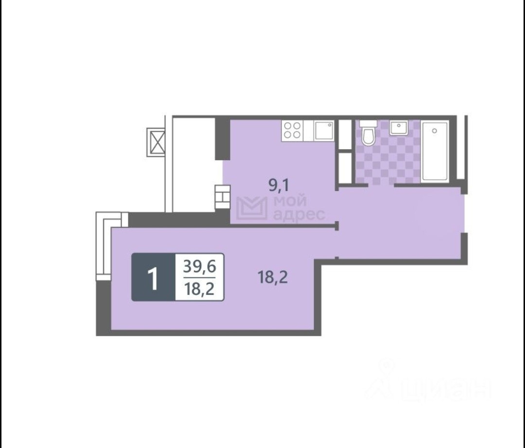 Балкон, лоджия 1 балкон