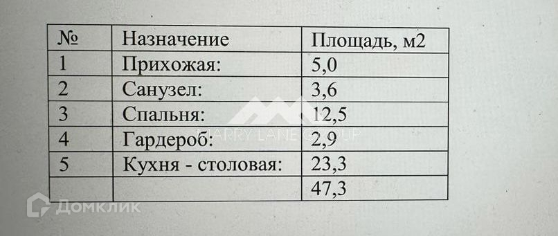 Общая площадь 47.3 м2