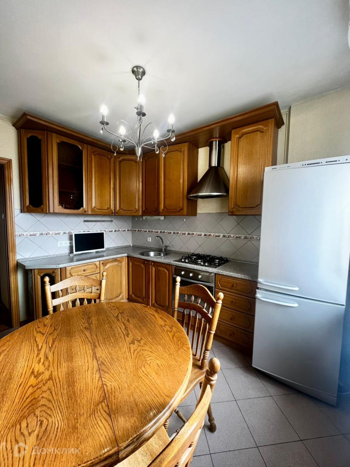 Кухонный гарнитур, межкомнатные двери, паркет выполнены из массива дуба.