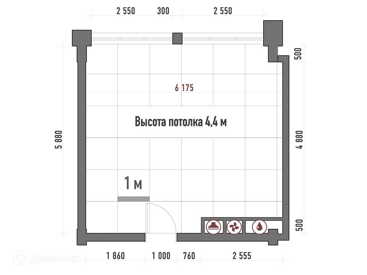 Общая площадь 34 м2