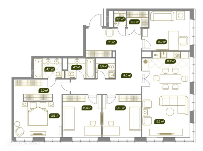 Общая площадь 135.8 м2