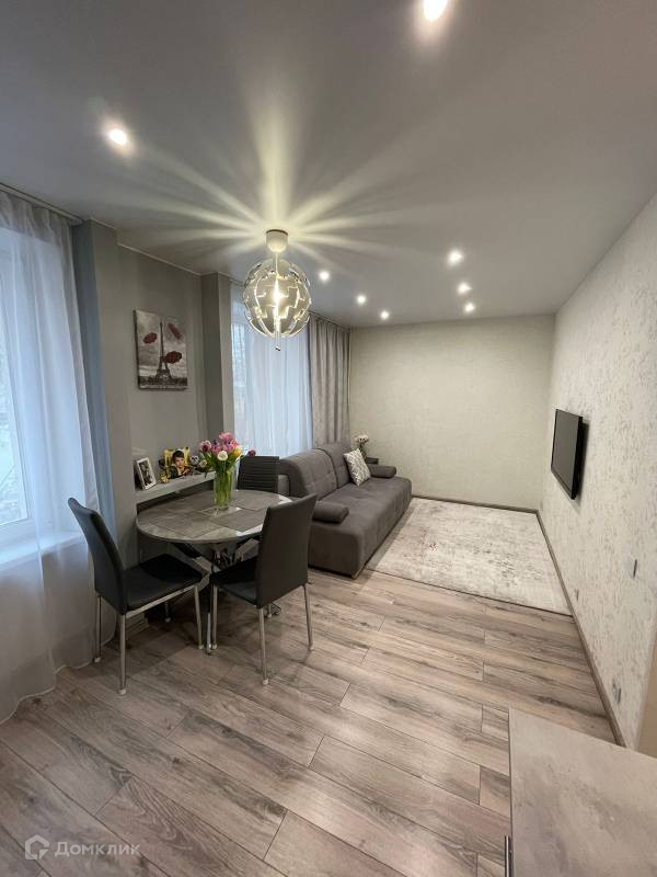Удобная планировка - кухня и гостиная в одном пространстве с обеденной зоной, что делает квартиру просторной, отличная освещенность.