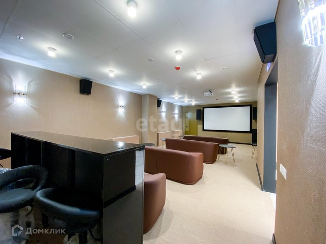 - На -1 этаже для жителей ЖК бесплатный фитнес, кинотеатр, бильярд. Летом открывается веранда с шезлонгами и зоной для барбекю