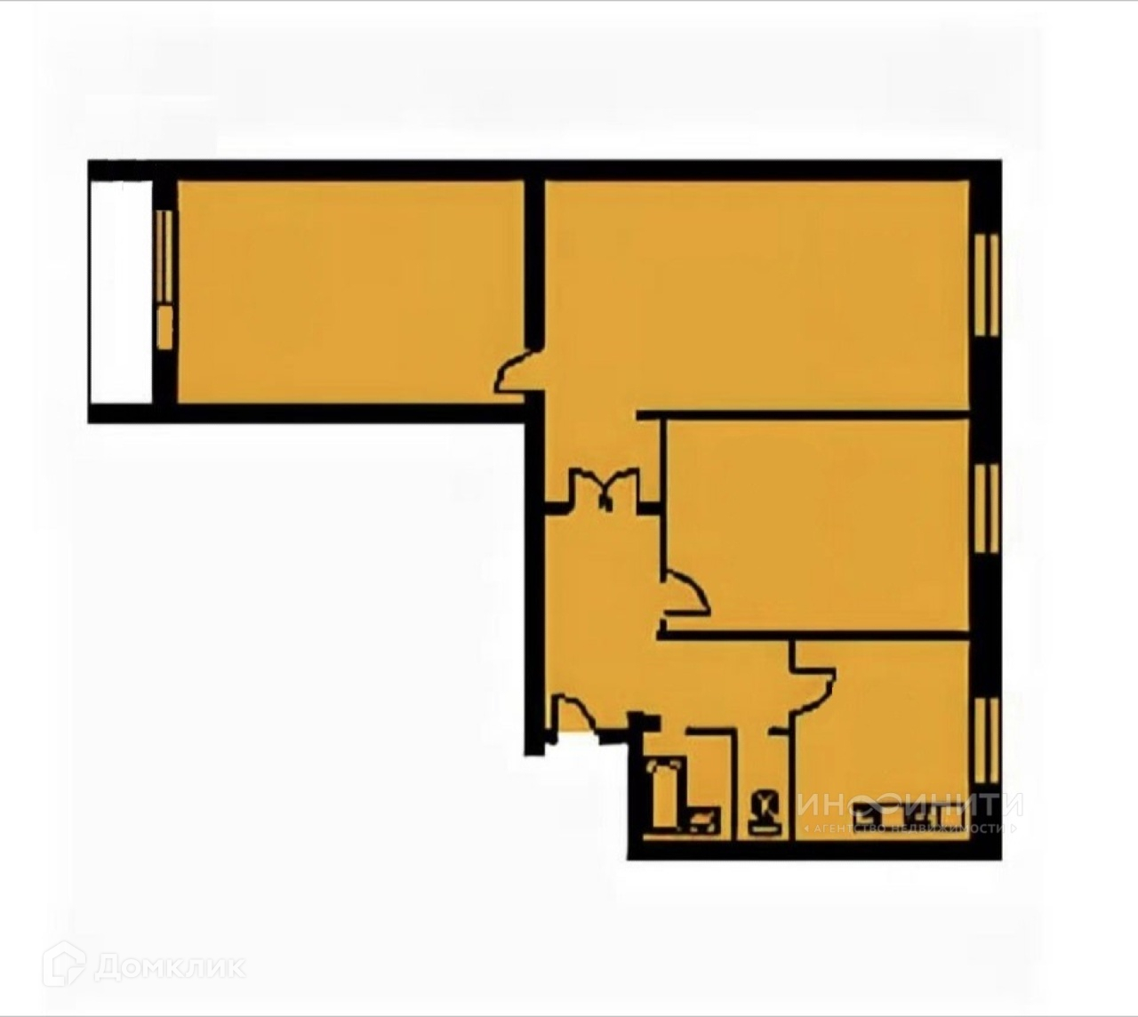 Квартира выходящая окнами на разные стороны дома. Две комнаты являются смежными, так как проход в дальнюю комнату, с лоджией только через другую комнату. Возможно kturfz перепланировка, делающая комнаты этой квартиры изолированными, для этого достаточно немного продлить коридор, прирезав к нему кусок одной из комнат, это добавит полезное место для кладовки. Санузел раздельный.
