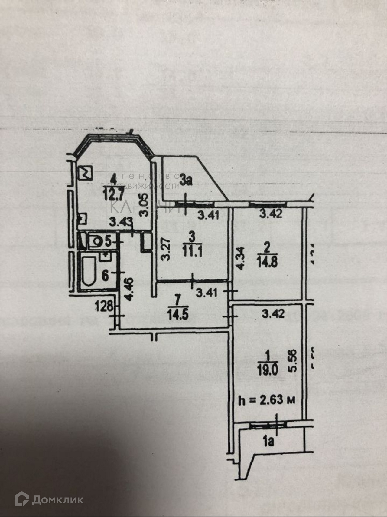 Жилая площадь 44.9 м2