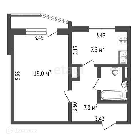 Общая площадь 37.6 м2