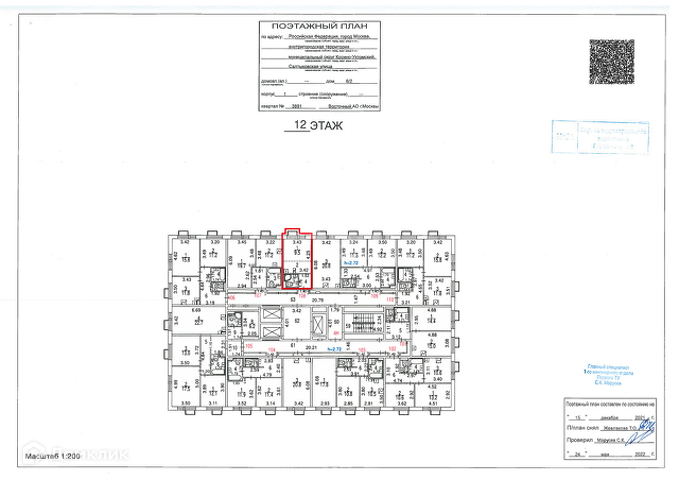 Российская Федерация, город Москва, внутригородская территория муниципальный округ Косино-Ухтомский, Салтыковская улица, дом 6/2, корпус 1, этаж 12, кв. 108
