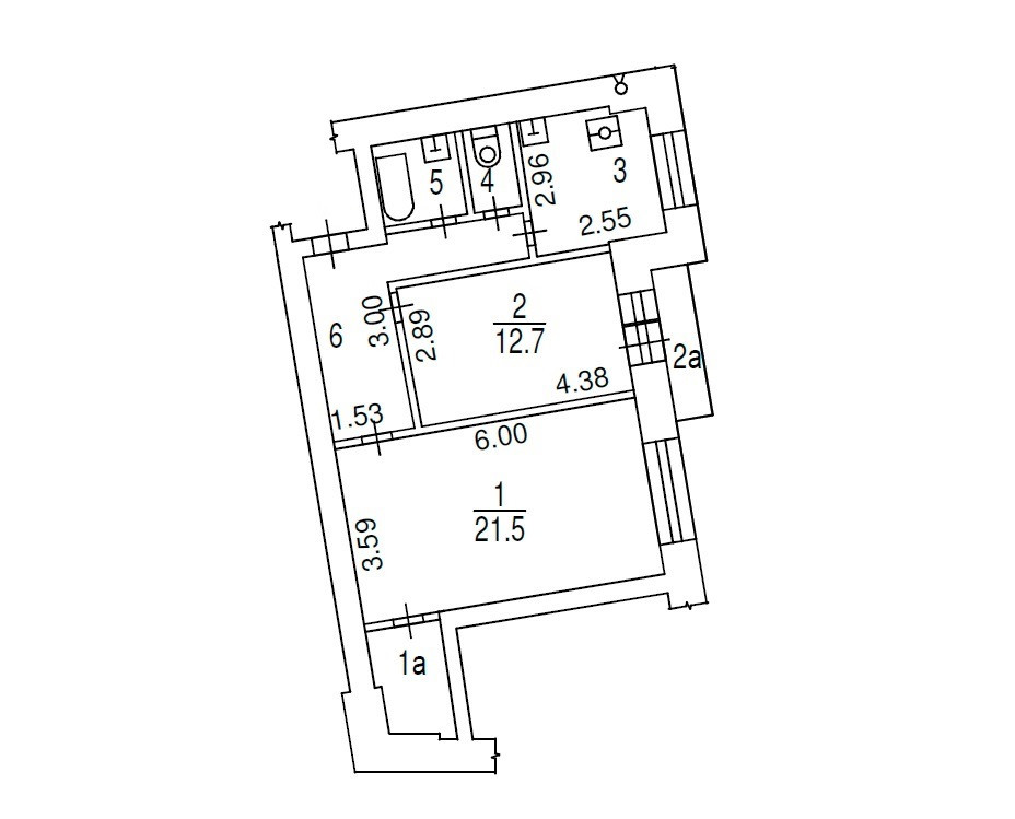 Раздельные комнаты 21,5 и 12,7 кв.м. Кухня 7,3 кв.м. Раздельный с/у. + Отдельная гардеробная комната 3 кв.м. Балкон остеклен. Все окна в тихий зеленый двор.