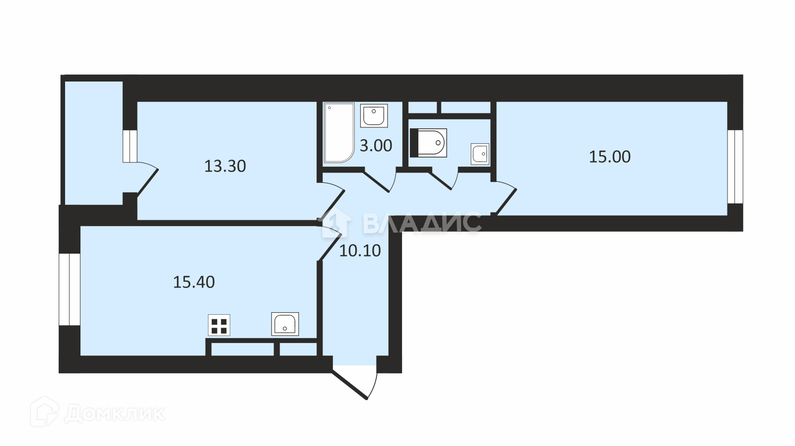 Общая площадь 60.5 м2