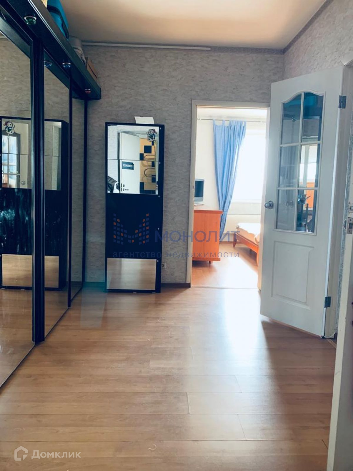 -обои на стенах, ламинат на полу