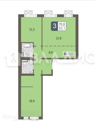Общая площадь 76.8 м2