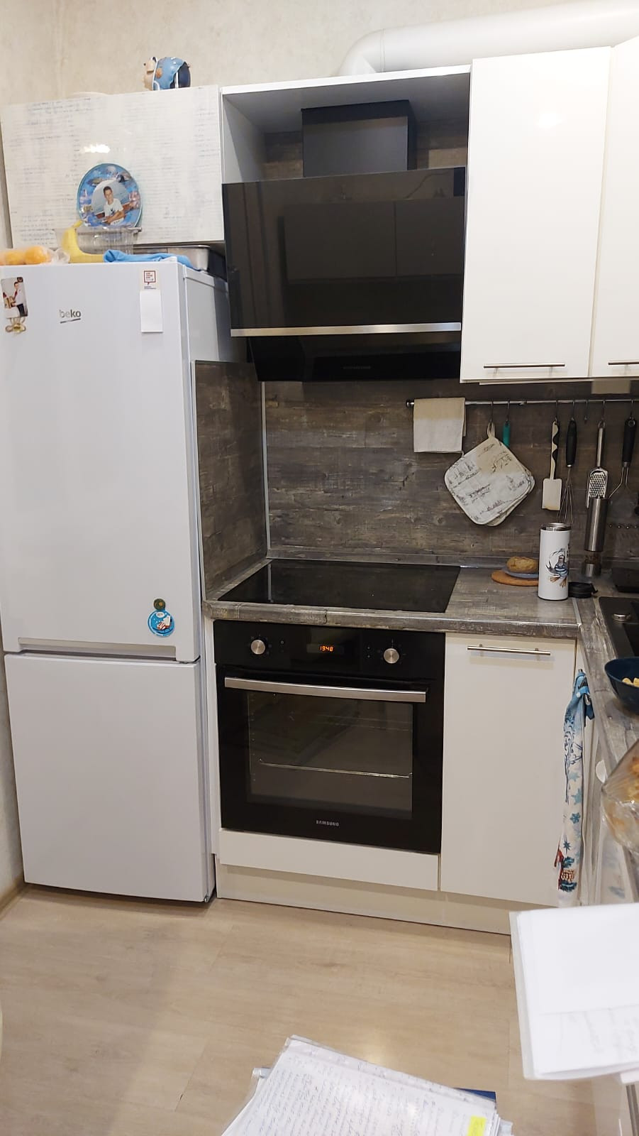 встроенная кухня и техника (плита, духовой шкаф, вытяжка, холодильник, стиральная машина и кондиционер) входят в стоимость,  Вам остается только перевести свои вещи.