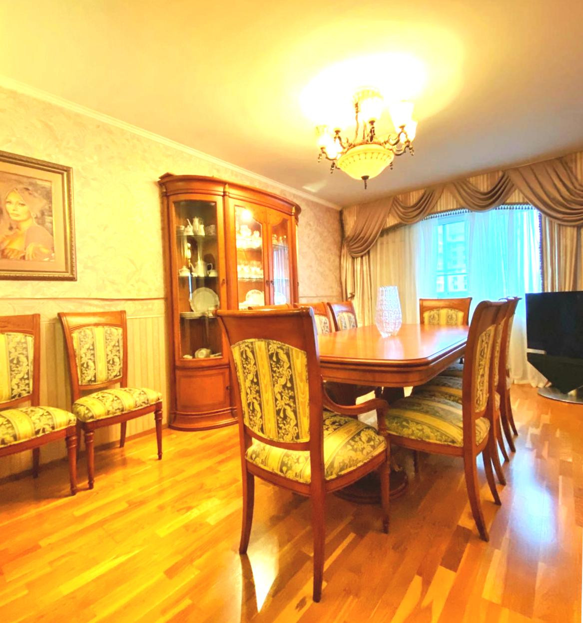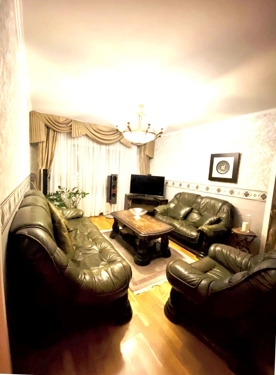 Квартира состоит из объединенных 2-х и 3-х комнатной квартир, перепланировка узаконена. Удобно расположены кухня со столовой, 2 гостиных, 3 спальни, 3 с/узла, один из них с окном. Ремонт выполнен из качественных материалов, немецкие стеклопакеты, теплый пол в кухне и с/у, 2 кондиционера, охранная сигнализация. Ждем заинтересованных покупателей! Звоните! Оперативный показ.