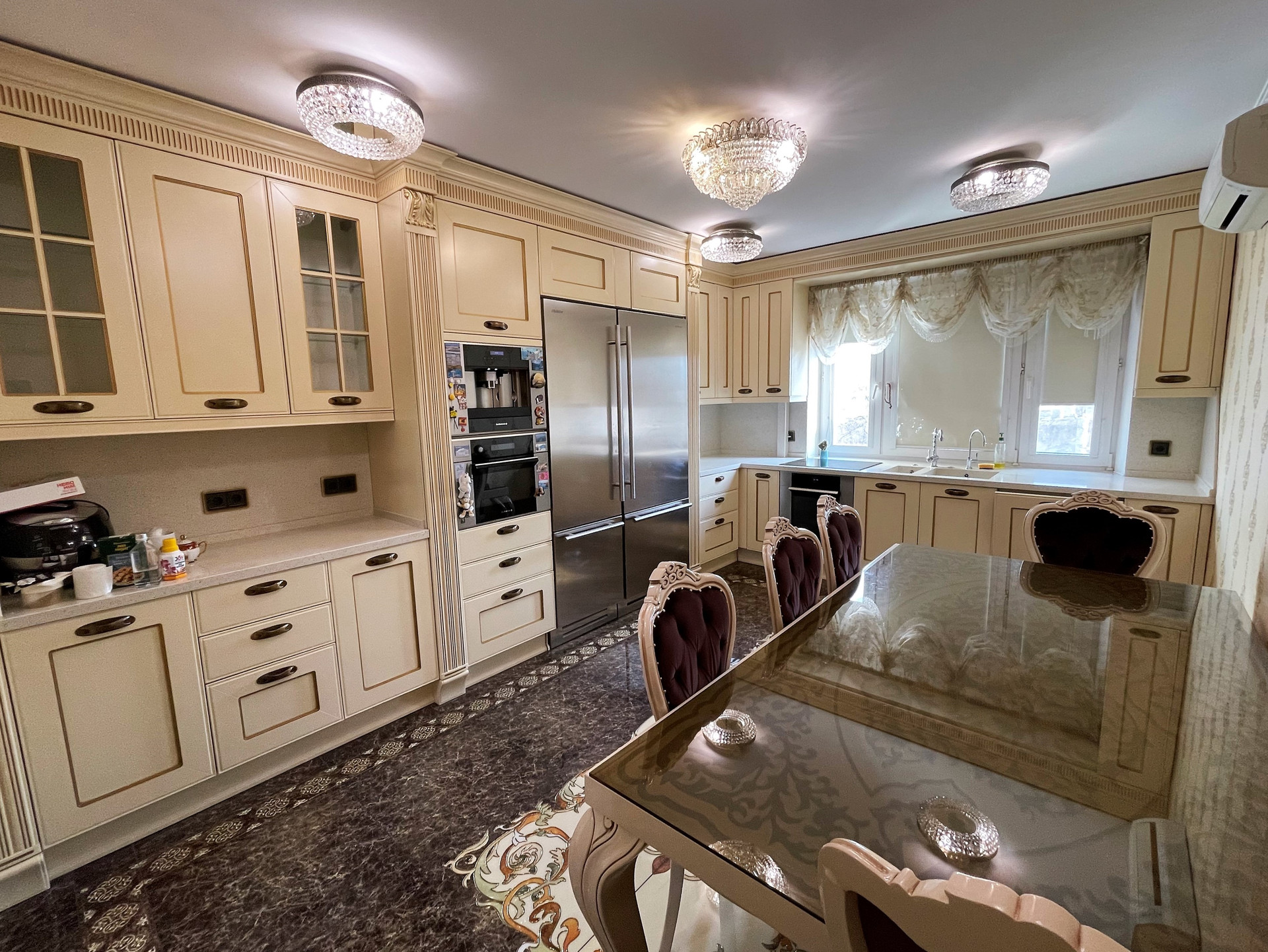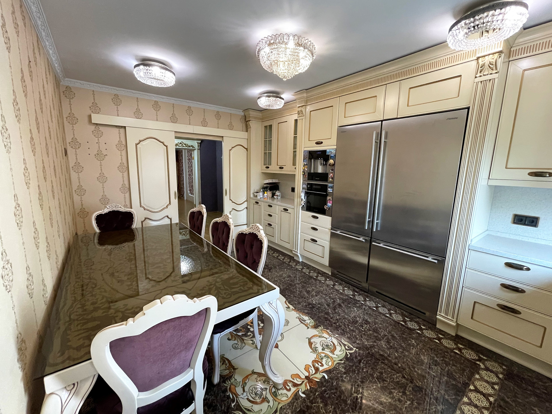 Квартира продаётся вместе с мебелью, осветительными приборами, сантехническим и другим оборудованием, видимыми на фото, а также с кухонным гарнитуром со встроенной высококачественной бытовой техникой французского производства De Dietrich и вместительными встроенными холодильной и морозильной камерами от люксового итальянского производителя профессионального холодильного оборудования Fhiaba. В настоящий момент подобное оборудование поставляется в Россию исключительно под заказ и по высокой цене.