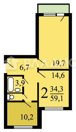 Общая площадь 59.1 м2