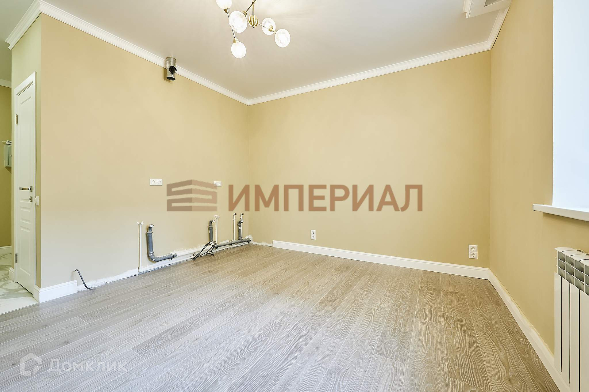 - Установлены счетчики электричества и воды, радиаторы, натяжные потолки, ламинат.