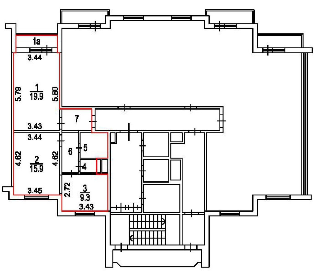 Общая площадь 61.4 м2