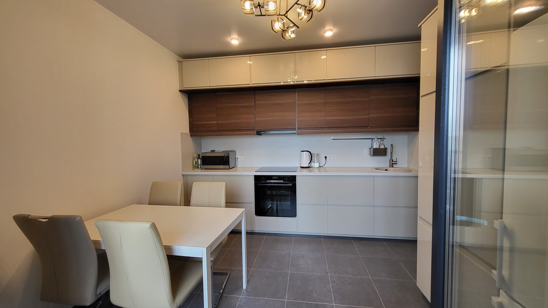 Общая площадь квартиры 60 кв.м., комнаты изолированы, просторная кухня 12,63 кв.м., комнаты – 17,75 кв.м и 14,95 кв.м., ванная комната – 4,60 кв.м., санузел – 1,53 кв.м. Лоджия из кухни 2,77 кв.м. Большая комната разделена на две зоны перегородкой, отличный вариант для зонирования, можно сделать спальню и детскую или гостиную и детскую. Натяжной потолок. В квартире выполнена качественная отделка. Установлен кондиционер. Шикарный вид из окон. Квартира продается с новой кухней, на которой установлена современная бытовая техника Bosch (вытяжка, варочная панель, духовой шкаф, посудомойка).
