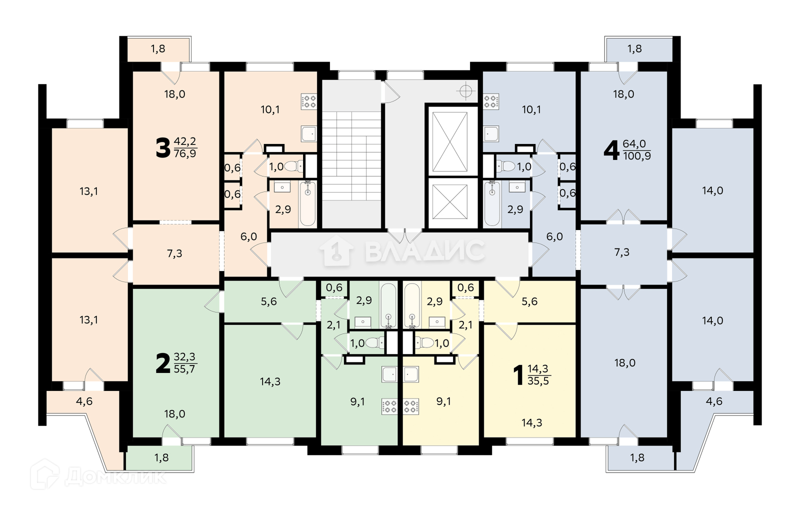 Общая площадь 55 м2