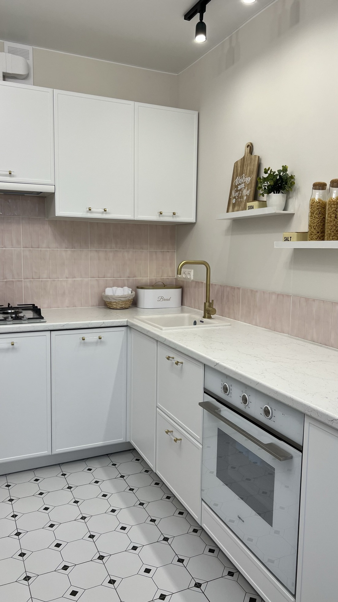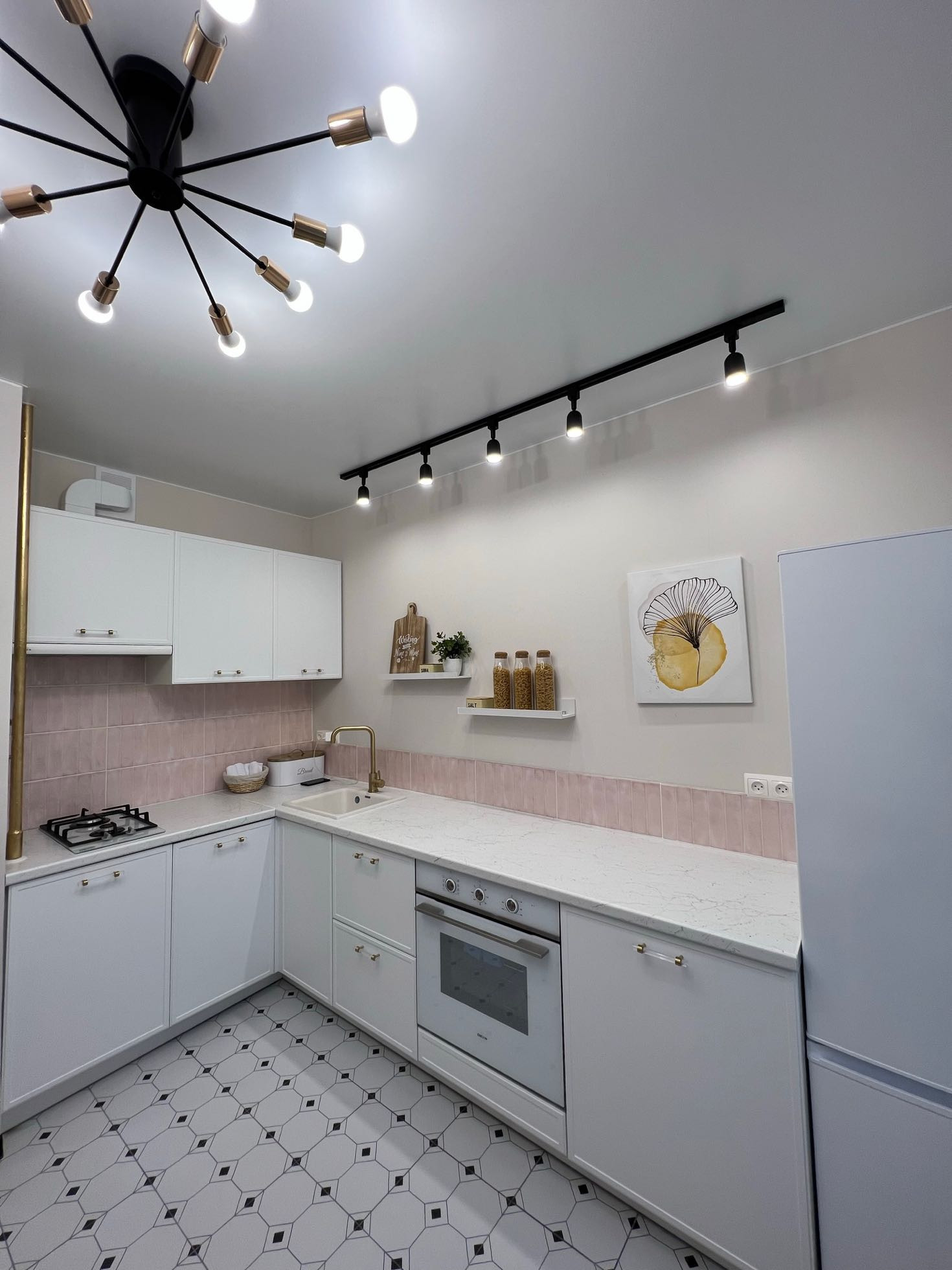 Светлая кухня, со встроенной техникой, посудомоечной машиной, плитой, духовкой и холодильником!