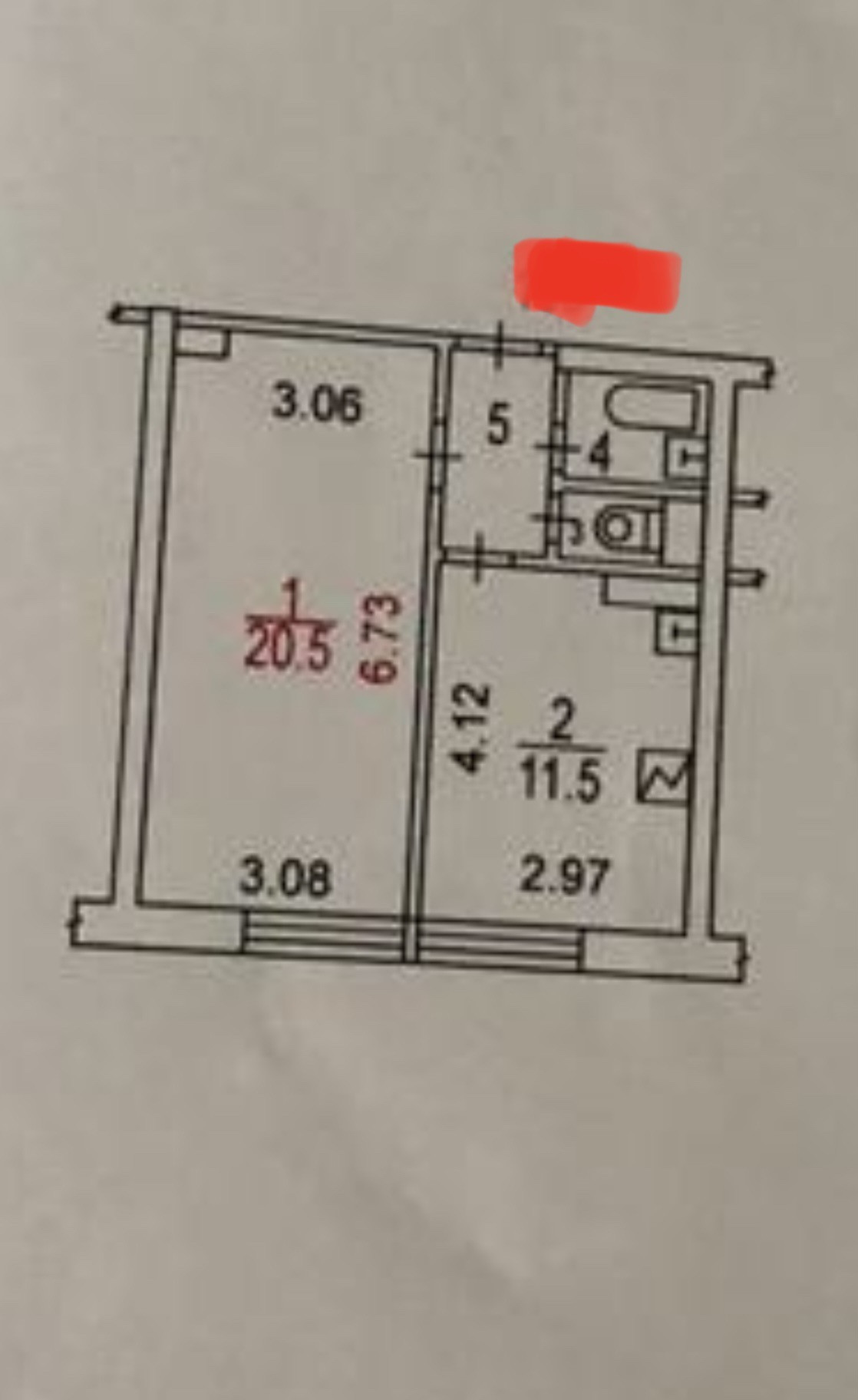 Жилая площадь 20.5 м2
