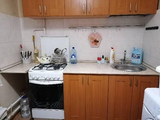 Общая 33 кв.м, кухня – 6,6 кв.м, окна во двор, с/у раздельный. Сделан косметический ремонт, в кухне – фартук, и в санузле плитка. Дом 1971 года постройки, панельный с ж/б перекрытиями, УК Фиалка (кооператив со своими коммунальными службами). В подъезде произведен ремонт, новая плитка, лифт,организован пандус. Паркинг во дворе.