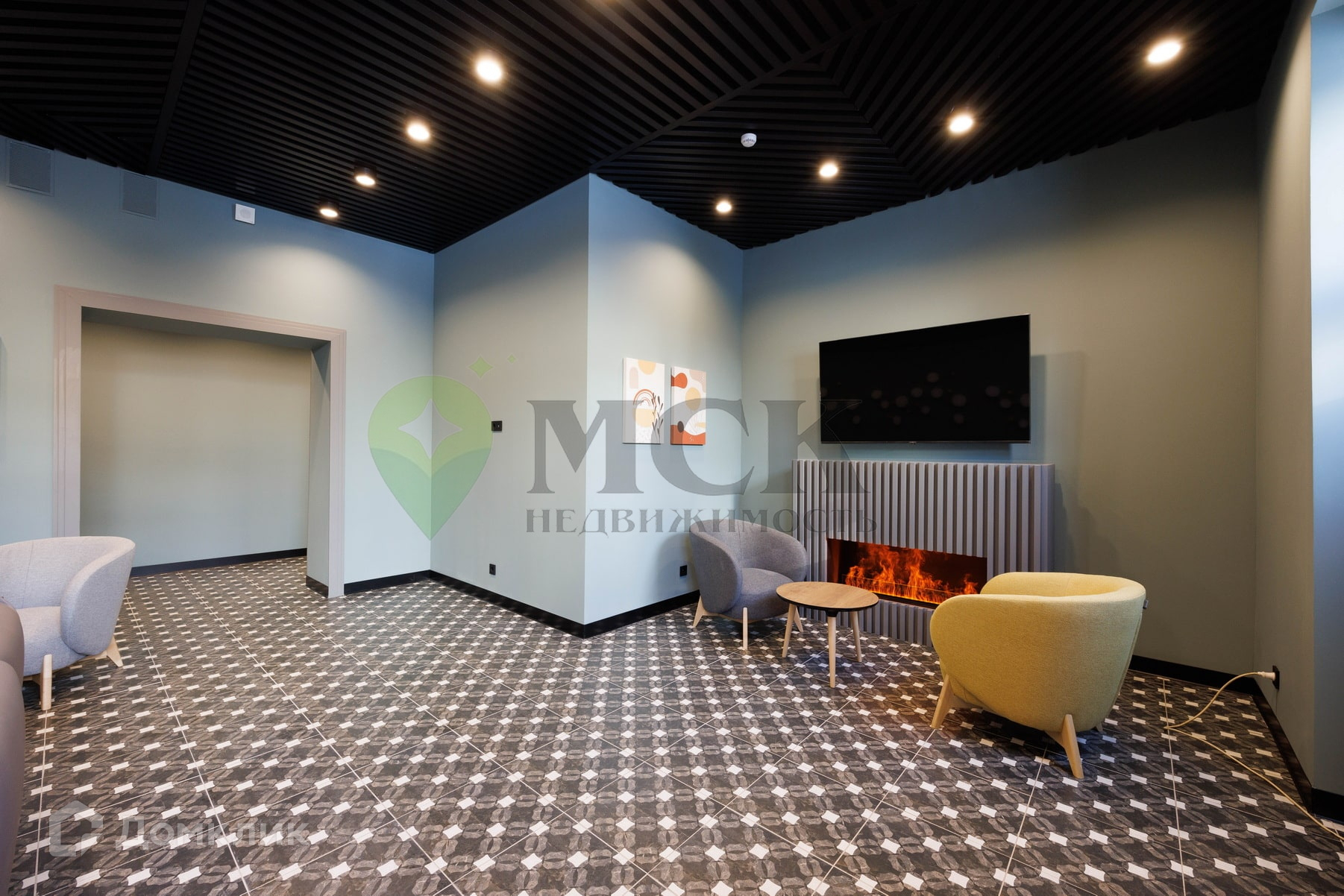 - Дизайнерское лобби с ресепшн, лаунж с мягкими диванами, камином и выходом на террасу.