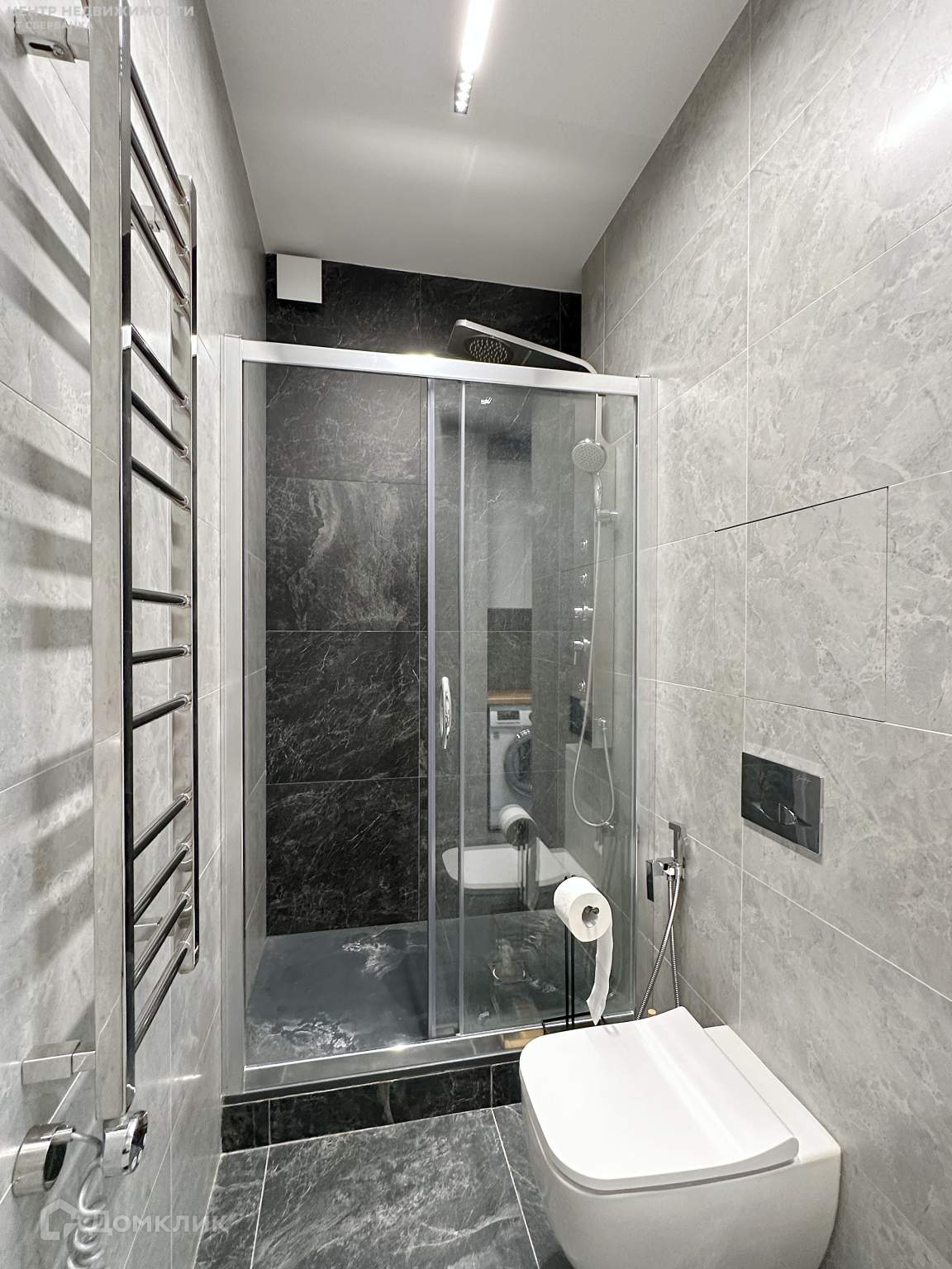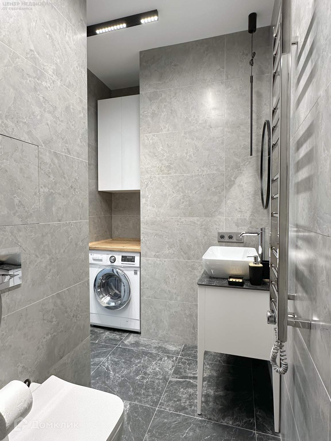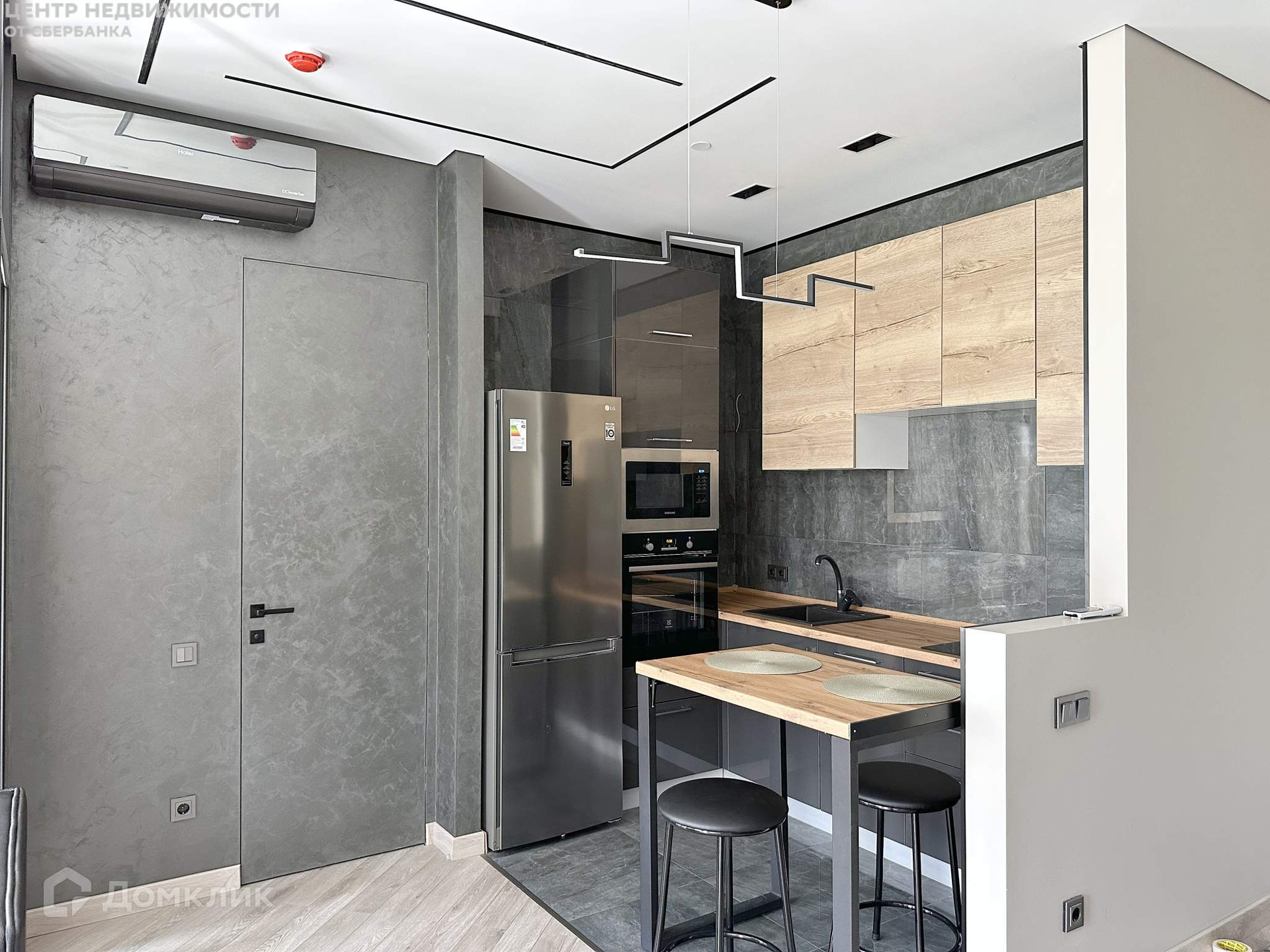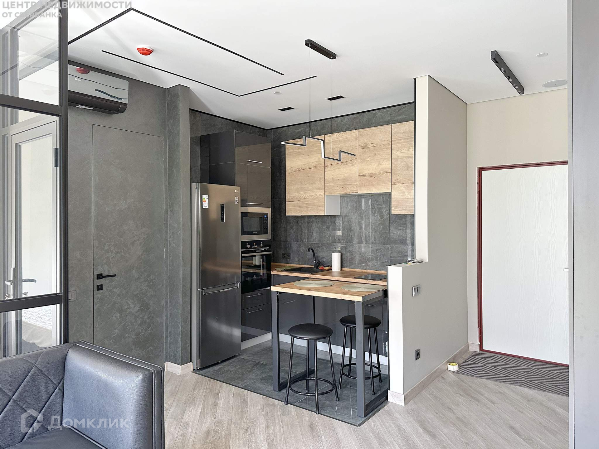 Сантехника Jacob Delafon, Ideal Standard. Скрытая дверь нестандартной высоты, эксклюзивные розетки и выключатели, потолки с теневым профилем, дизайнерский кондиционер с возможностью работы от смартфона.