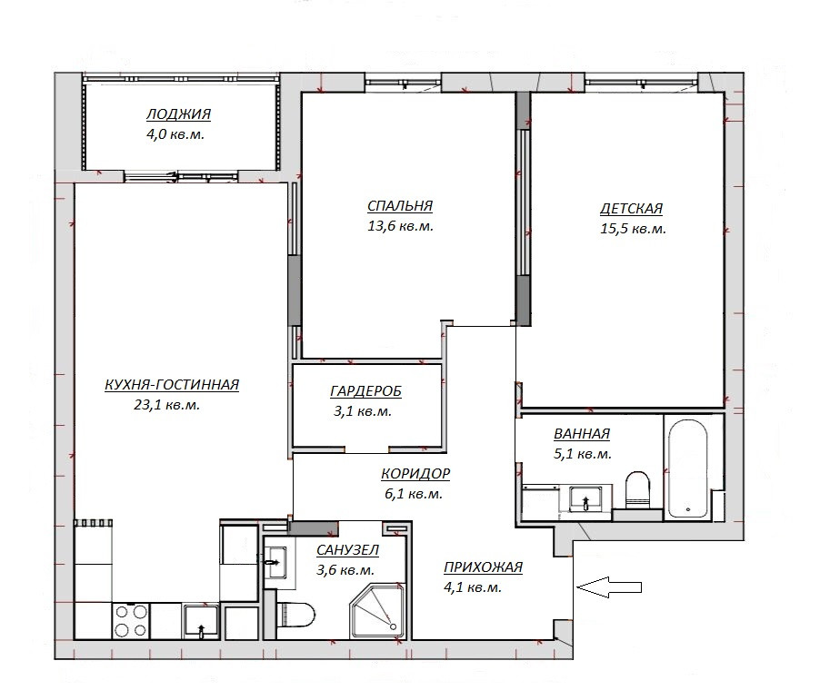 Санузел 1 совмещенный