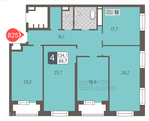 Общая площадь 134.1 м2