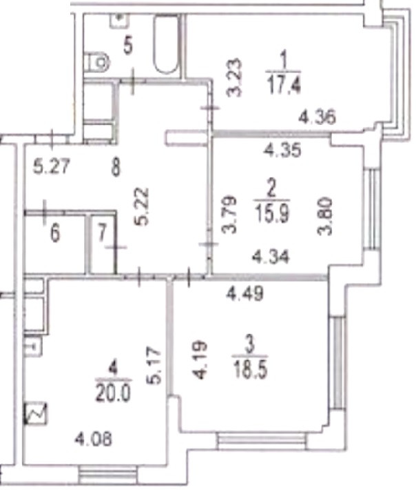 Жилая площадь 51.8 м2