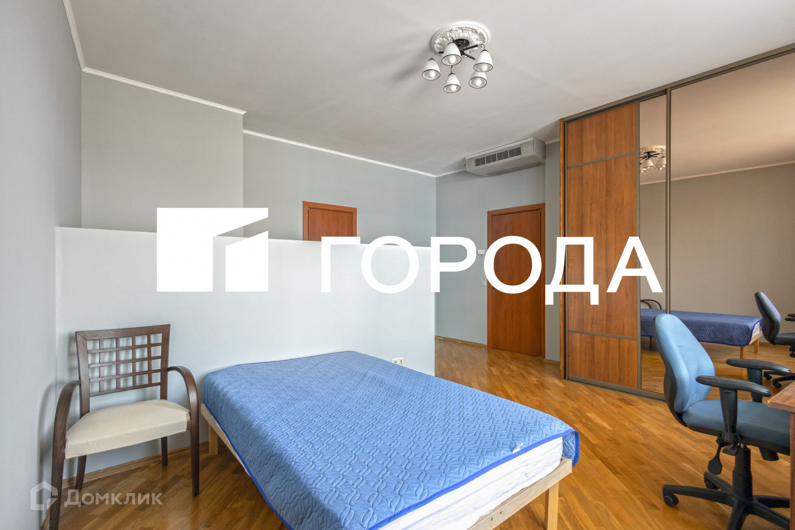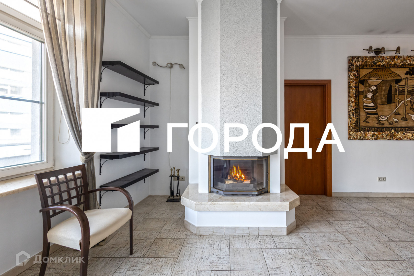 В квартире спланированы: кухня-гостиная со встроенной кухней и необходимой техникой с дровяным камином, 2 спальни, 2 санузла (один - с душевой кабиной, другой - с полноценной ванной), лоджия, кабинетная зона, объемные системы хранения (4 просторных встроенных шкафы-купе с зеркалами).