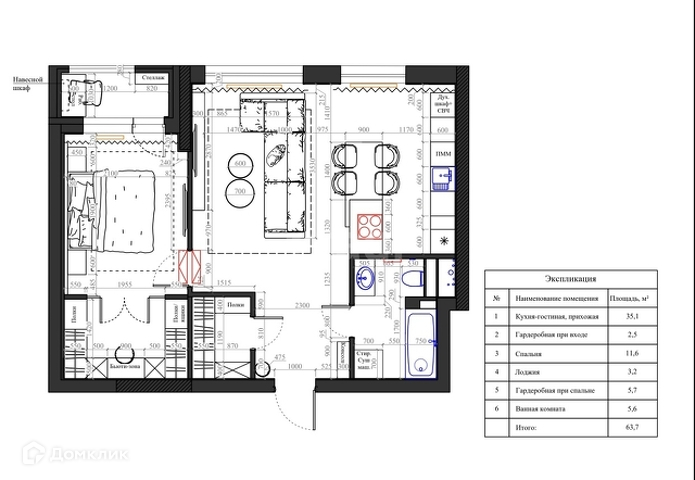 Общая площадь 63.5 м2