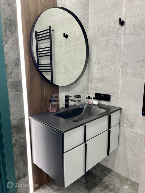 Совместный с/у, теплая стена между ванной и стиральной/сушильной машинами. Ванная из искусственного камня. Из техники: стиральная и сушильная машины фирмы Jackys (Англия), бойлер Ariston.