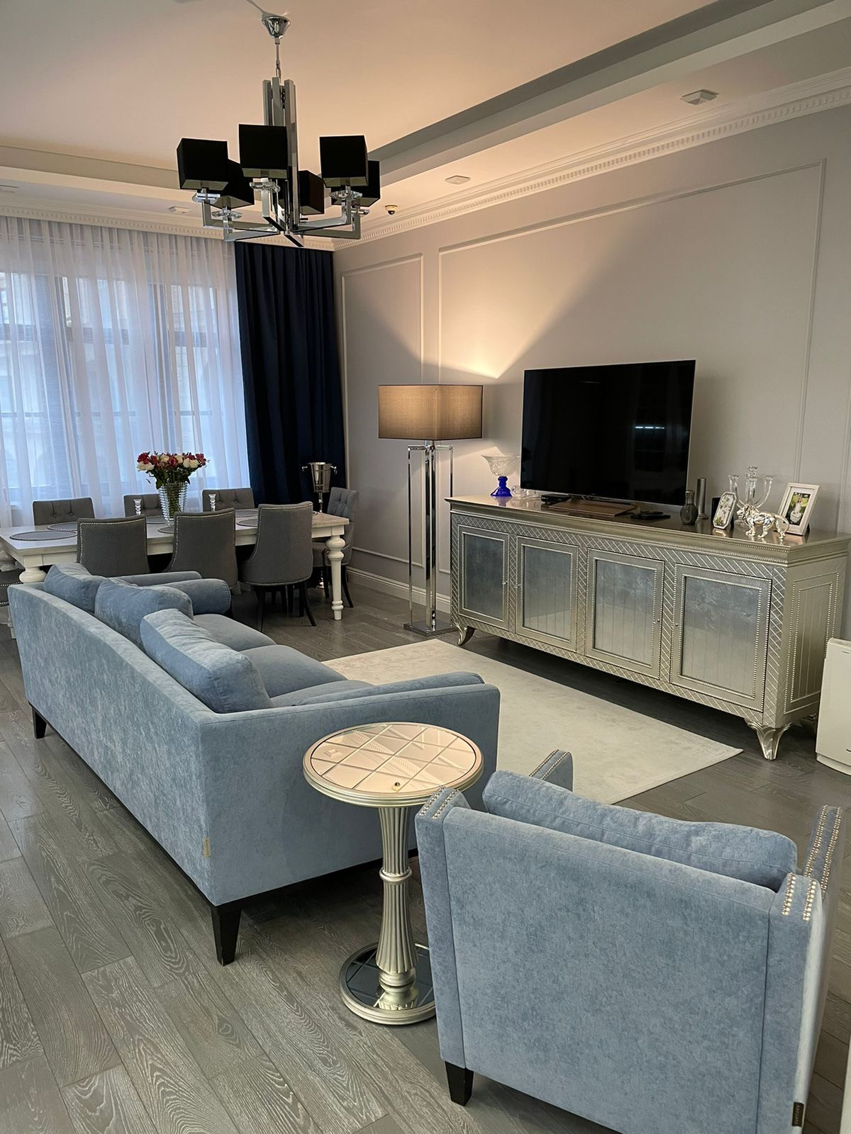 Квартира общей площадью 140 кв.м выполнен ремонт под руководством дизайнера Юлии Фомина. Всё пространство квартиры спланировано до мелочей.
