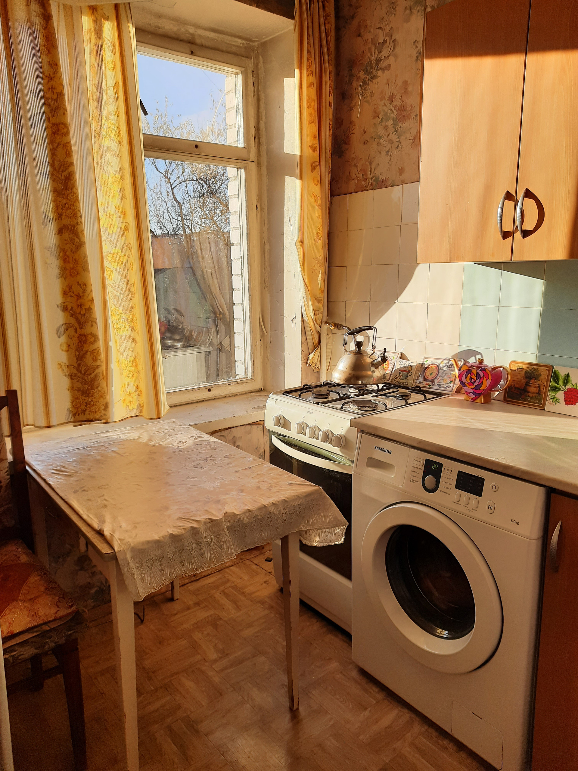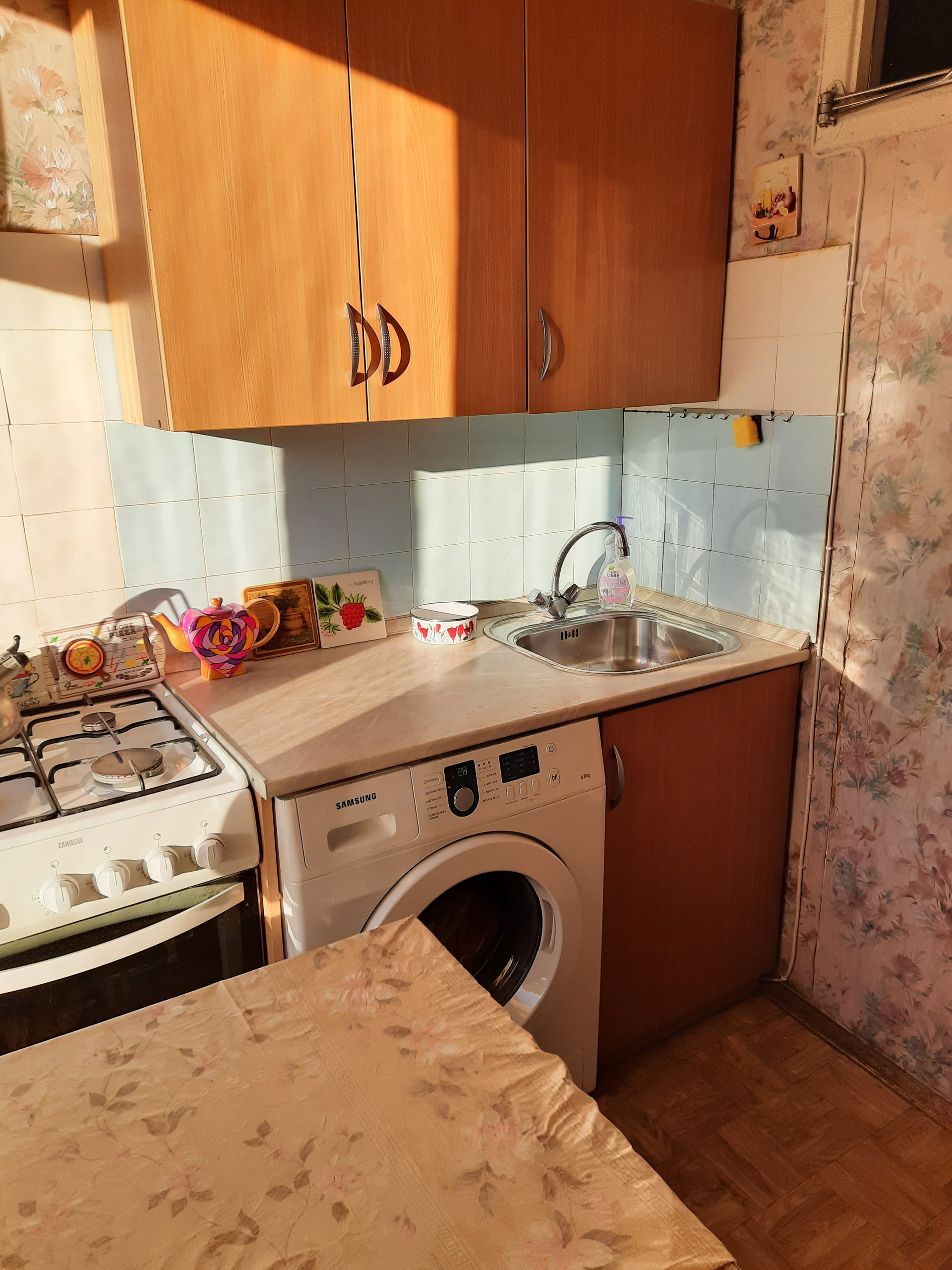 - стены в 3 кирпича (можете посмотреть на фото кухни), в квартире очень тихо, не сравнить с панельными и монолитными домами;