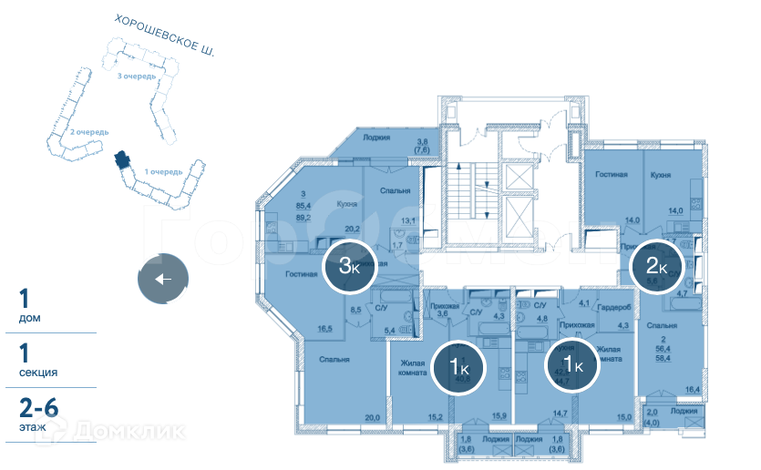 3-комнатная квартира, 89.2 м2, этаж 5 / 23, на продажу в Москве, Хорошёвское шоссе, 25Ак2