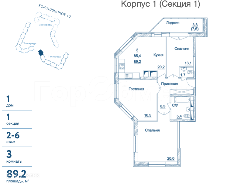 Общая площадь 89.2 м2