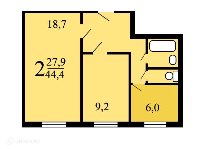 Общая площадь 44.4 м2
