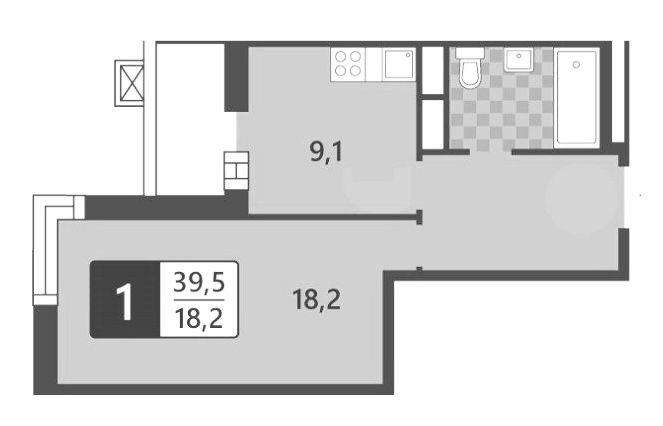 Общая площадь 39.5 м2