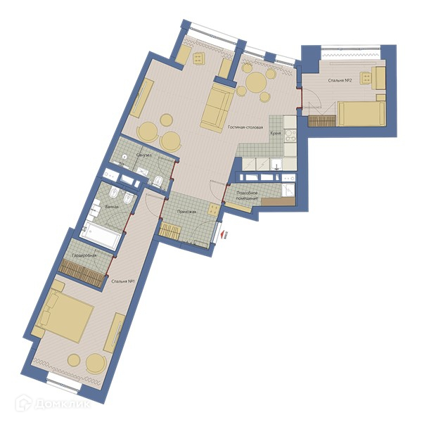 Жилая площадь 60.8 м2