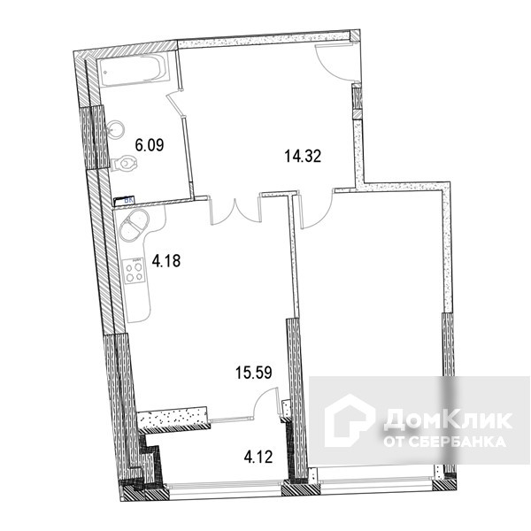 Жилая площадь 38.29 м2