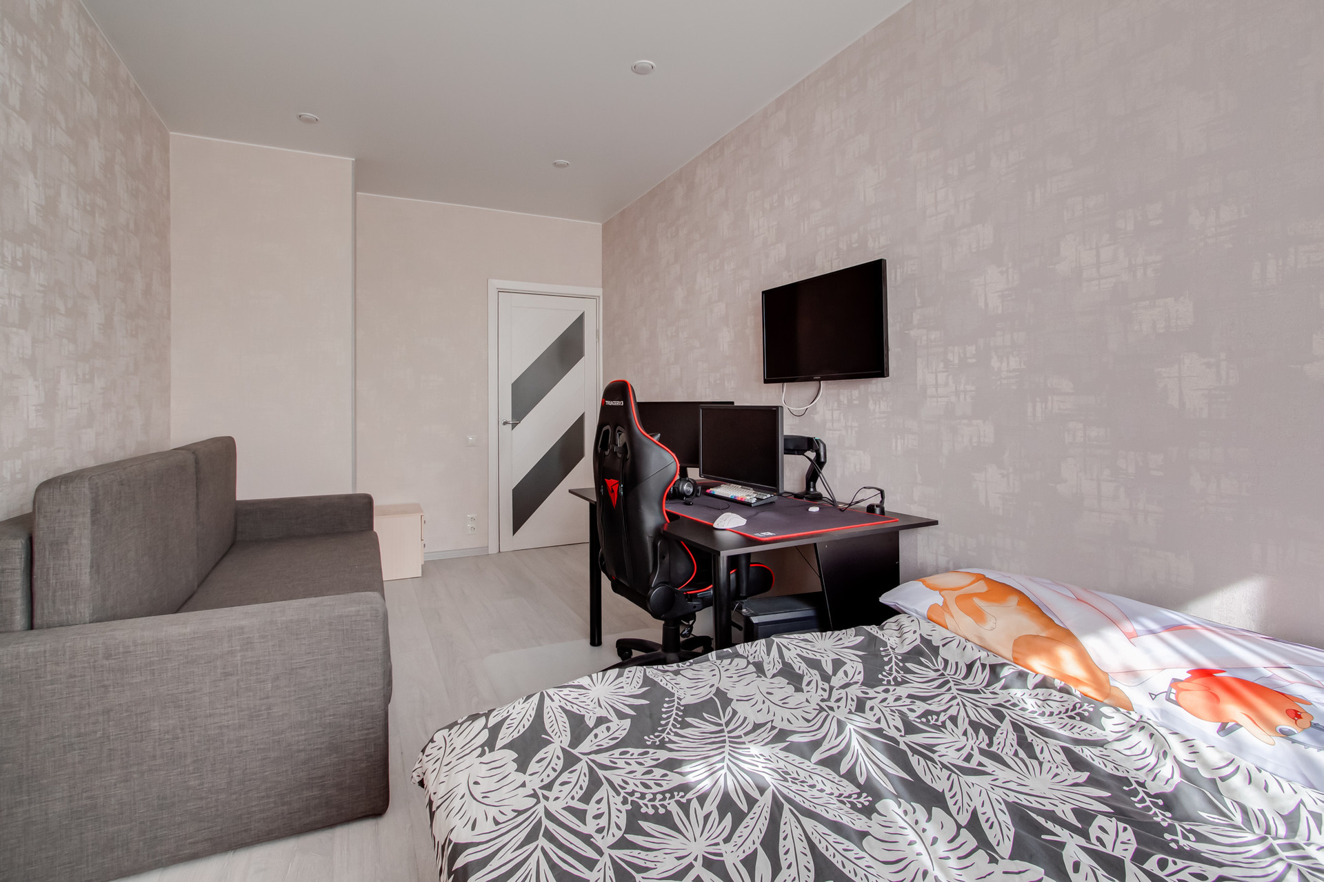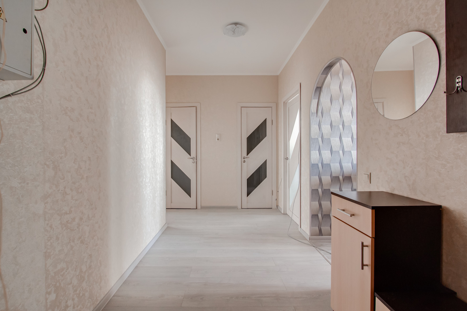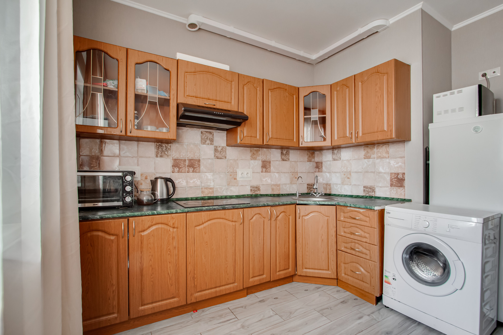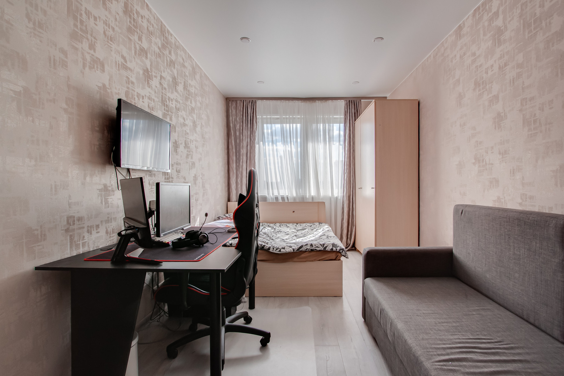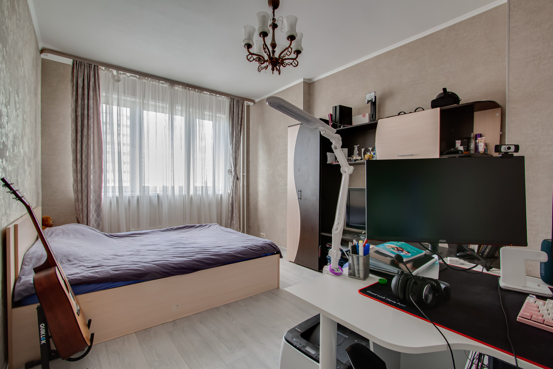 Общая площадь – 55,5 кв.м, жилая площадь - 31 кв.м, кухня -10 кв.м, просторная прихожая с возможностью сделать шкаф-купе для хранения, раздельный санузел. Удобная планировка: светлые изолированные комнаты. В квартире остаётся вся мебель и техника, кроме компьютеров (столов и стульев для них). Балкон застеклён, окна - стеклопакеты, полы - ламинат. Прекрасный вид из окон на город. Хорошие соседи, чистый просторный подъезд с консьержем, во дворе детская площадка. Зеленый район, тихий двор.