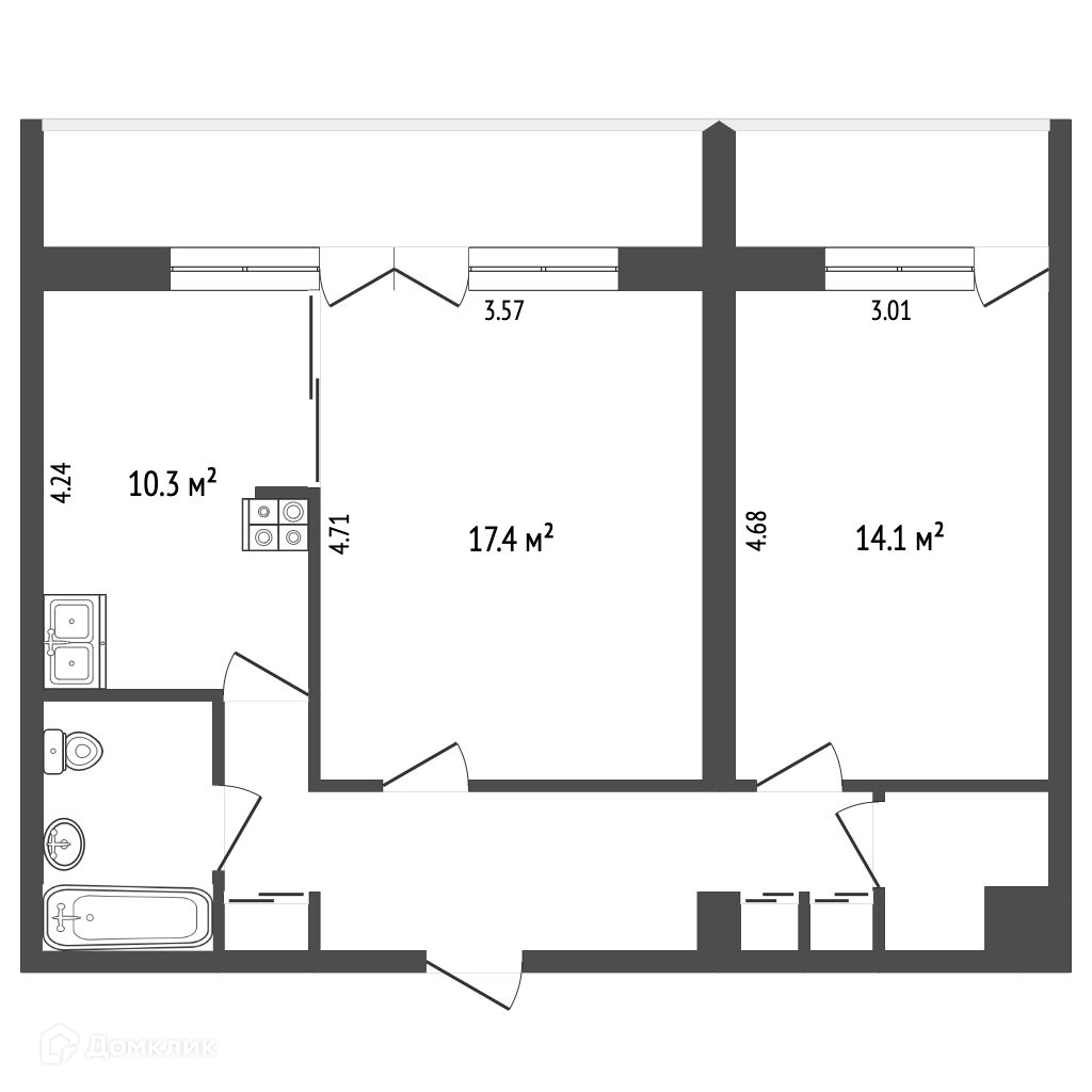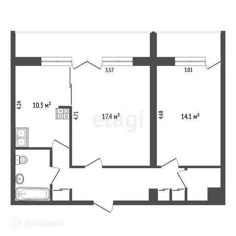 Общая площадь 58.5 м2