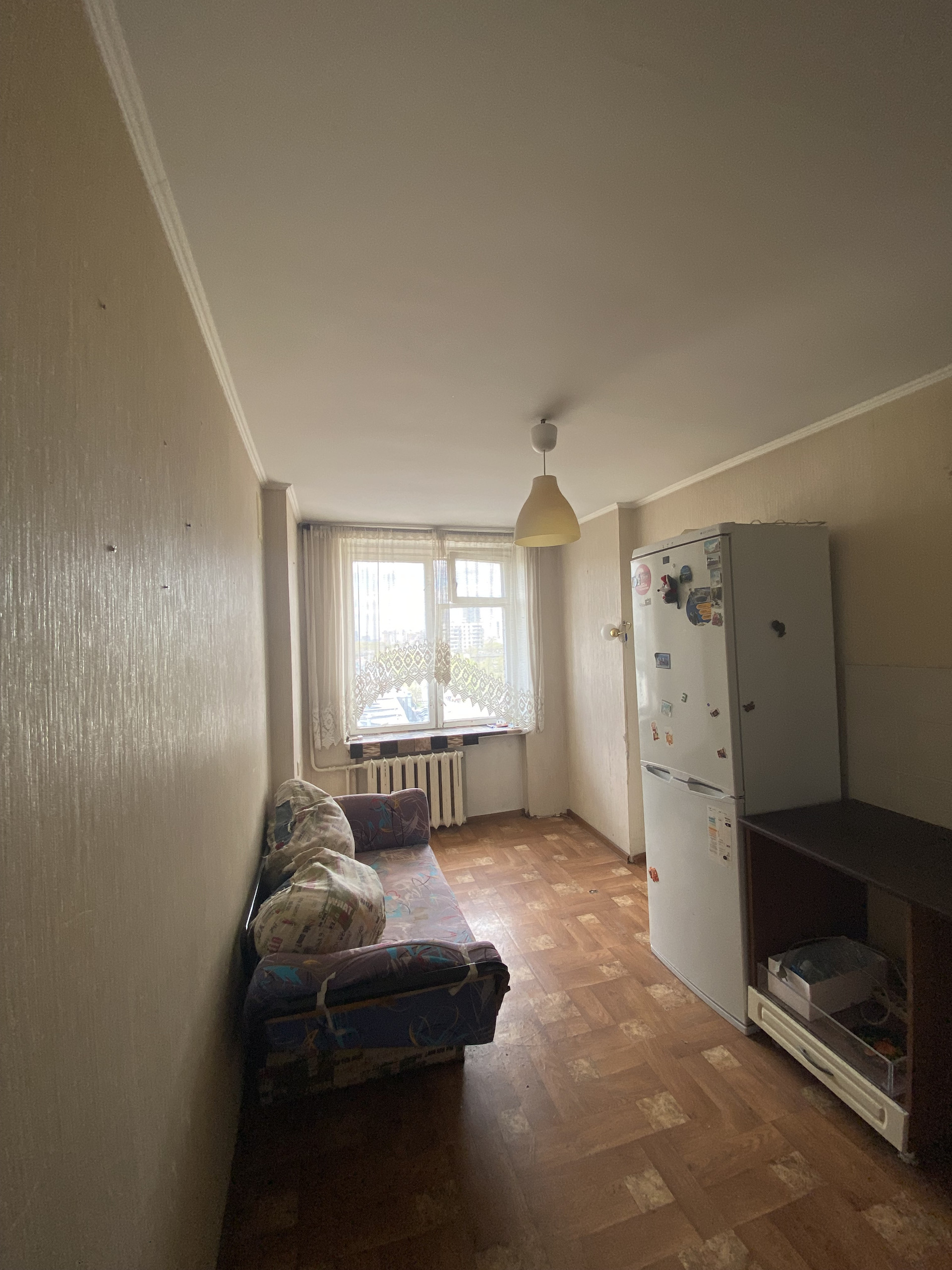 Квартира пригодна для проживания, очень теплая, с линейной планировкой. Чистый подъезд, домофон, один пассажирский лифт, мусоропровод.