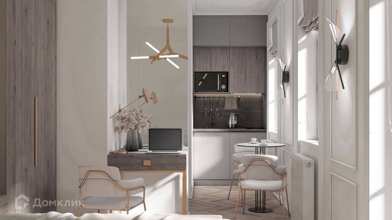 В стоимость студии уже включена отделка, мебель и техника: