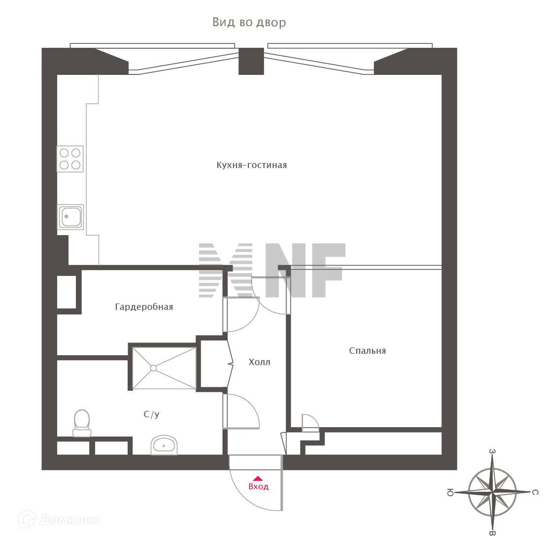 Планировка: гостиная-кухня, изолированная спальня, ванная комната (с ванной и душевой кабиной), гардеробная.